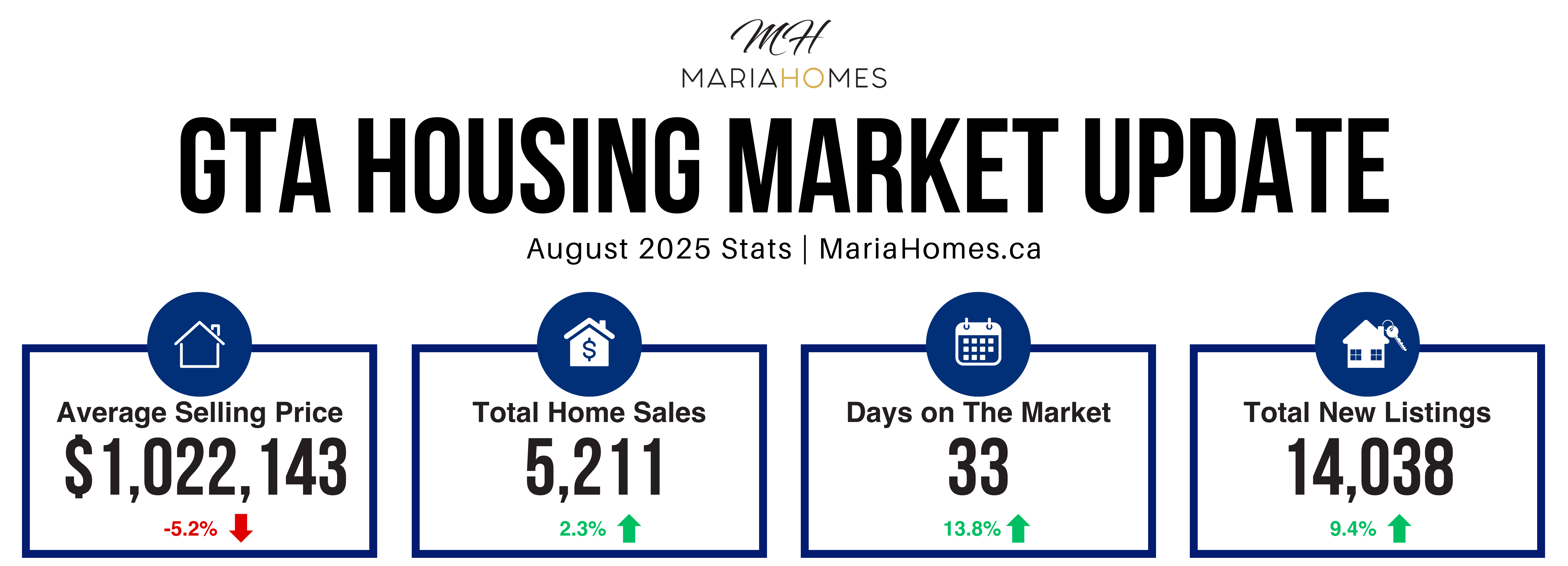 TORONTO, ONTARIO, September 4, 2025 – August home sales reported by the Toronto Regional Real Estate Board (TRREB) were up on a year-over-year basis. Over the same period, home buyers benefitted from an even larger increase in the inventory of listings. Average selling prices continued to be negotiated downward due to the elevated choice across market segments. “Compared to last year, we have seen a modest increase in home sales over the summer. With the economy slowing and inflation under control, additional interest rate cuts by the Bank of Canada could help offset the impact of tariffs. Greater affordability would not only support more home sales but also generate significant economic spin-off benefits,” said TRREB President Elechia Barry-Sproule. Greater Toronto Area (GTA) REALTORS® reported 5,211 home sales through TRREB’s MLS® System in August 2025 – up by 2.3 per cent compared to August 2024. New listings entered into the MLS® System amounted to 14,038 – up by 9.4 per cent year-over-year. On a seasonally adjusted basis, August home sales edged lower month-over-month compared to July 2025. In contrast, new listings increased compared to July, reaffirming that buyers continue to benefit from a well-supplied market. The MLS® Home Price Index Composite benchmark was down by 5.2 per cent year-over-year in August 2025. The average selling price, at $1,022,143, was also down by 5.2 per cent compared to August 2024. On a month-over month seasonally adjusted basis, the MLS® HPI Composite and average selling price remained flat compared to July. “A household earning the average income in the GTA is still finding it challenging to afford the monthly mortgage payment associated with the purchase of an average priced home. This is even with lower borrowing costs and selling prices over the past year. Further relief in borrowing costs would see an increased number of buyers move off the sidelines to take advantage of today's well-supplied market,” said TRREB Chief Information Officer Jason Mercer. “New, large scale infrastructure projects, including affordable housing, public transit, ports and shipbuilding will be important for sustaining Canada’s economic sustainability in the medium-to-long term. However, in the short term, spurring consumer spending on large ticket items like housing coul